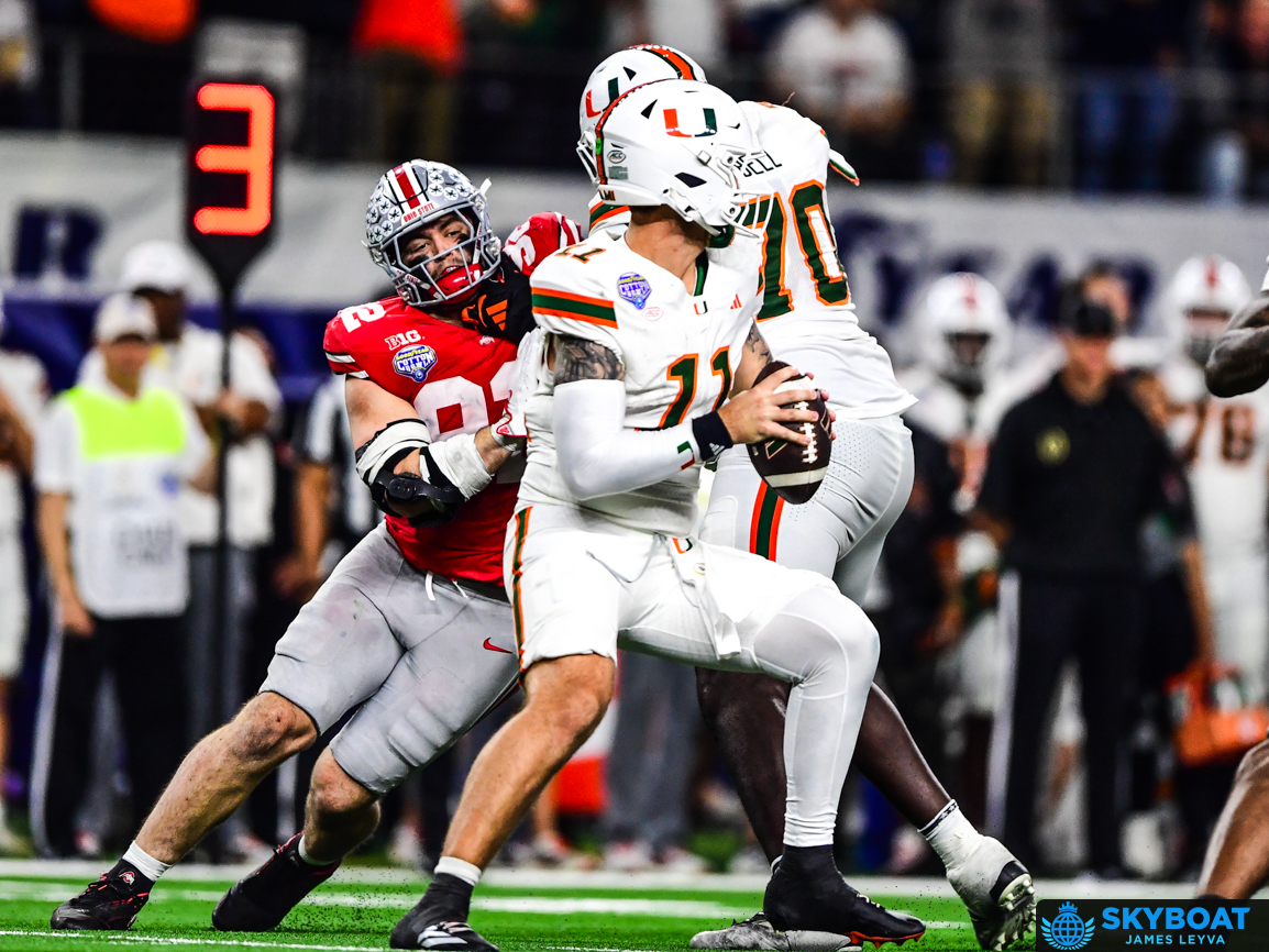 ARLINGTON, Texas – Miami dethroned Ohio State 24-14 in the CFP Quarterfinal at the Goodyear Cotton Bowl Classic at AT&T Stadium. James Leyva was there